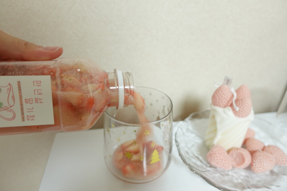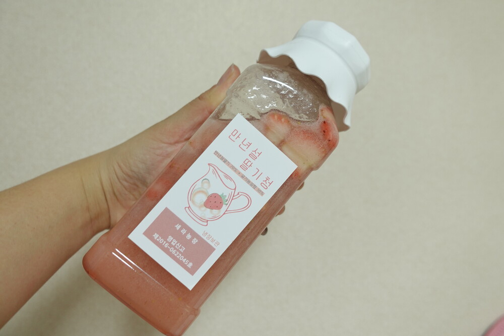 (가라앉아 있는 딸기 알맹이들이 함께 나와야 더 맛있게 드실수 있답니다. ^__^)